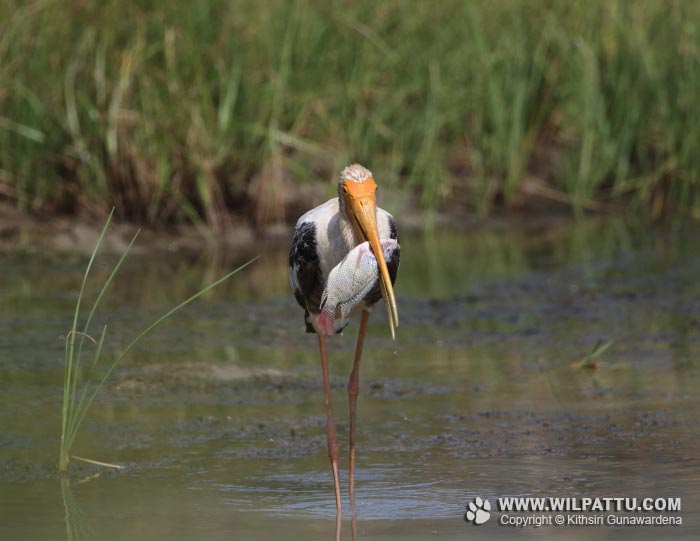 11.09am a Lesser Adjutant Stork walked among the tall grass at Kumbuk Wila.