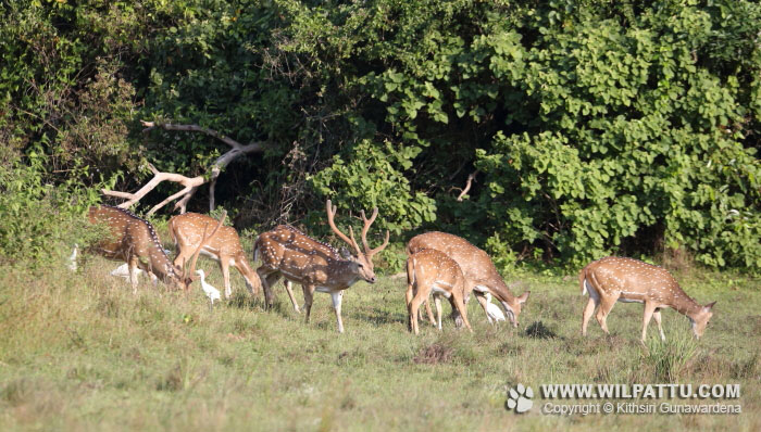 7.04am a small herd of 8 Spotted Deer were feeding on the dew drenched grass at “Kukul Katu” plains.