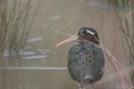 8.50am at Panikkar Villu a Pin-tailed Snipe, resting on a small piece of wood with its feet exposed permitted me to take a few photos. These birds are usually seen in damp areas of the park probing the soft earth with their long beaks and their legs are seldom seen as their lower bodies are covered by grass.