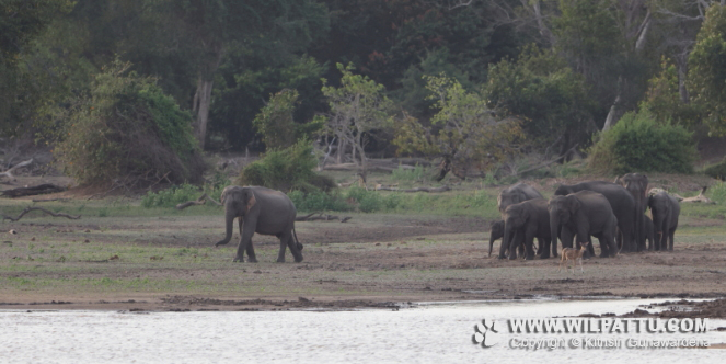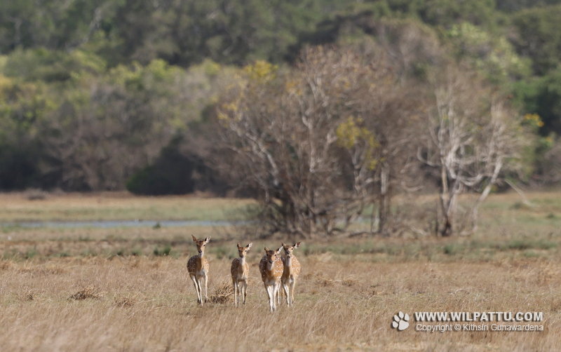 6.30am a herd of 8 Spotted Deer at Pomparippu Pitiya.6.35am the road leading up to and beyond the water hole at Wellanmundalama junction had fresh pug marks of two leopards and a Sloth Bear paw prints other than those of other mammals.