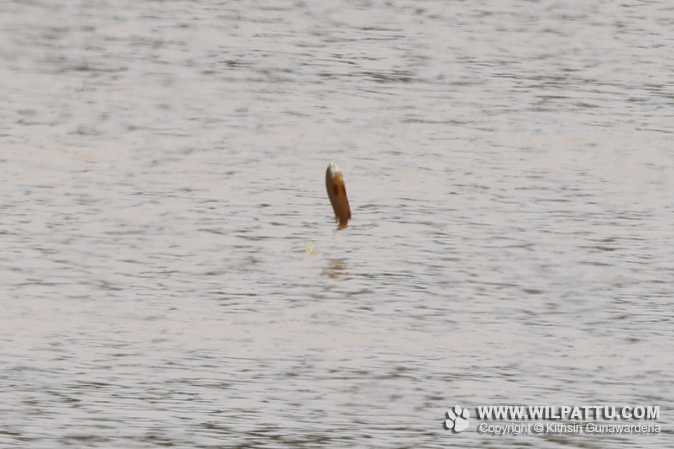 1.06pm about half a kilometer from the “crocodile pool” towards Periya Villu is another pool of water. I wanted Amith to park the vehicle to observe the behavior of fish here. The fish was jumping out of the water continuously despite there being no signs crocodiles. We spent about half an hour here and there were no crocodiles to be seen. The noise of the fish leaping into the air and falling back was quite loud as if someone was continuously pelting stones into the water. I managed to get a few images of the leaping fish, and they were all Climbing Perch. Unlike most other species of fish, the Climbing Perch possess an air breathing organ other than their gills that enables them to breath and live out of water for up to about 7 to 10 hours. It is very likely that the reason for these fish to keep leaping out of the water is due to the depletion of oxygen level in the water. The term used to explain the level of oxygen in water is “Dissolved Oxygen” (DO). What causes such depletion of oxygen in a pool which is in the middle of the jungle was the next matter I had to resolve. Reading up on the subject revealed that the main reasons for low Dissolved Oxygen levels in water is the increase in temperature, decaying organic matter from aquatic plants and algae, and changes in whether. The very high temperature in these areas and the other factors mentioned directly apply to the conditions prevalent in this pool. This pool was not connected to any other water body on the surface thus the conditions for low dissolved oxygen should have been present here with greater intensity. Therefore, it is quite clear that Climbing Perch with their ability to breath air directly can survive in such poor-quality water unlike most other species of fish. However, these fish possess a specialized labyrinth organ and a folded structure located above their gills which allows them to absorb oxygen from air. Usually they periodically swim to the surface of the water to gulp air in to the suprabranchial cavity containing the labyrinth organ for this purpose. Thus, there had to be another reason for these fish to continuously engage in such energy consuming behavior of leaping into the air. As I was not able to find any explanation in the literature, I consulted Dr. Samantha Suranjan who offered a possible explanation even though he insisted that it is only an educated guess which needs to be proven.