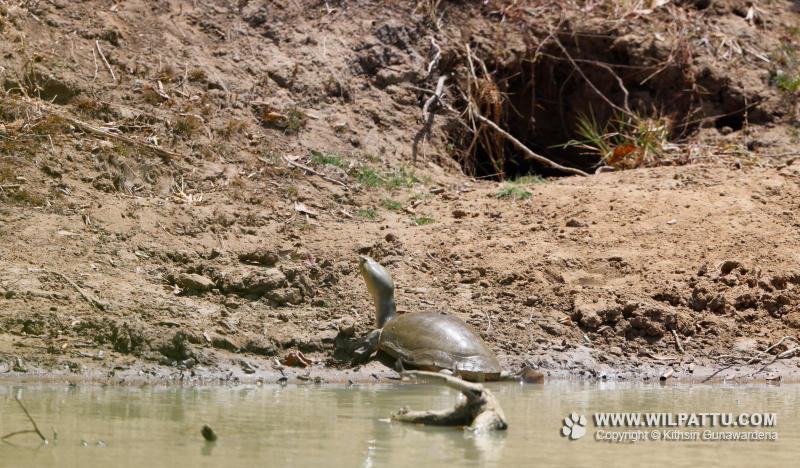 1.30pm a Mugger Crocodile and a Flapshell Turtle at the pool across Periya Uppu Villu.2.15pm pm since we had a sighting of a leopard at Periya Uppu Villu in the morning I decided to park at this location. There were two Elephants, a mother and calf feeding across the water.