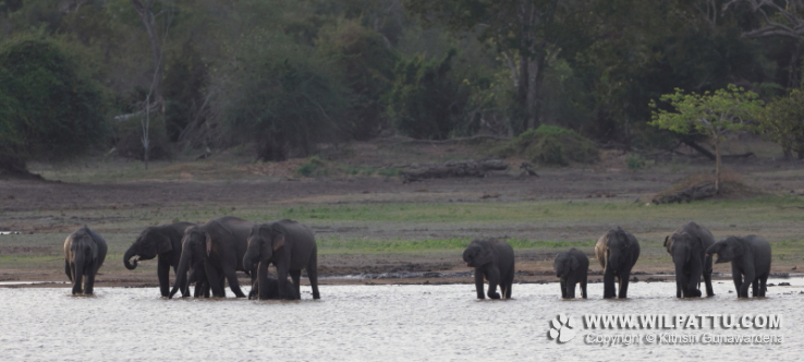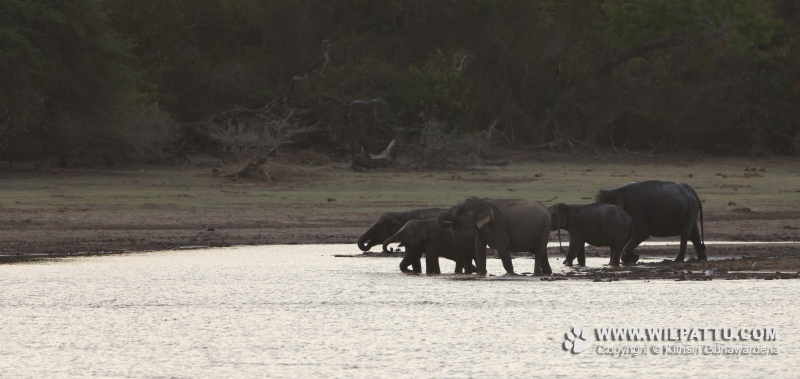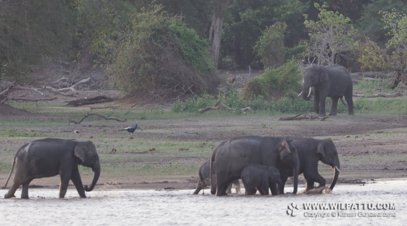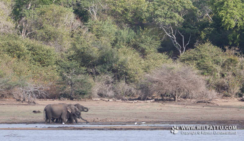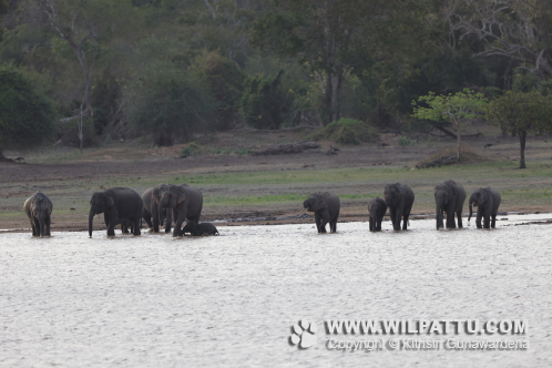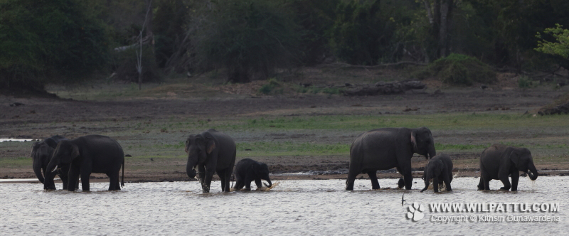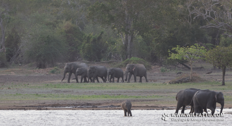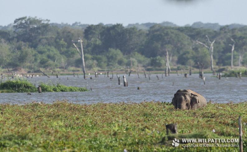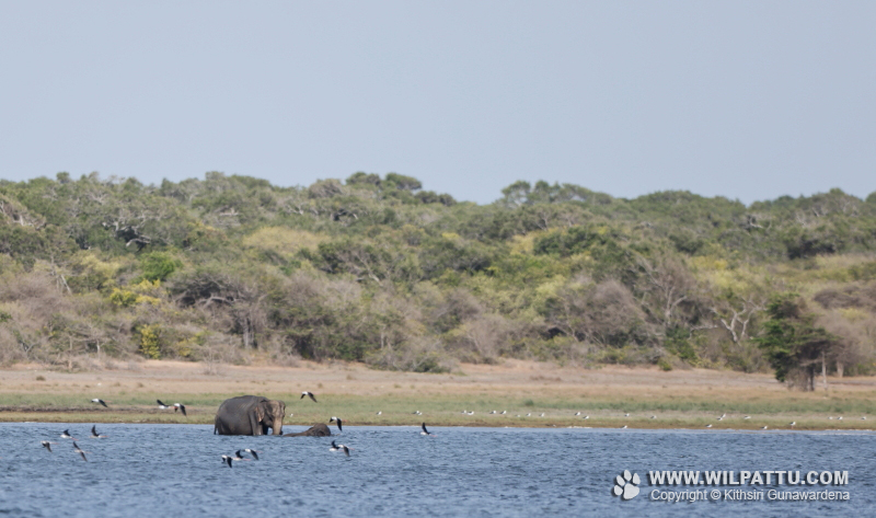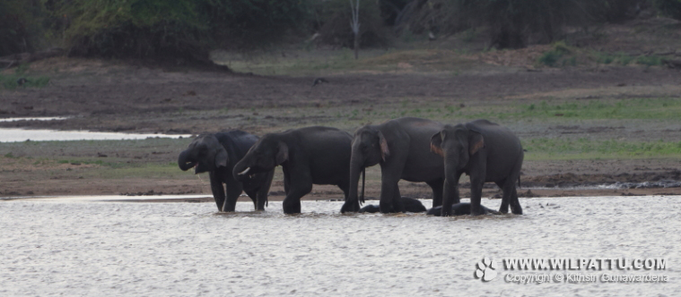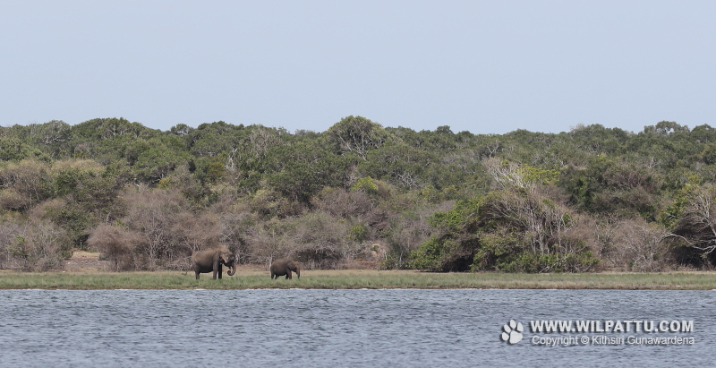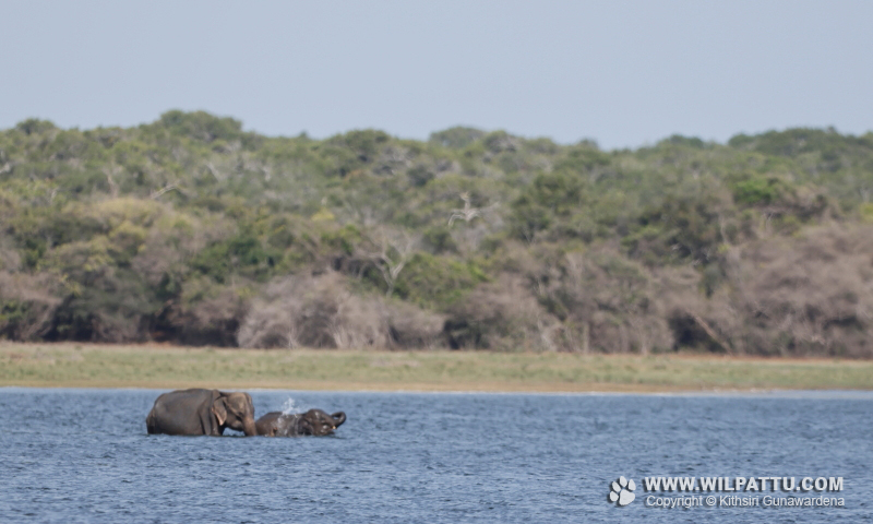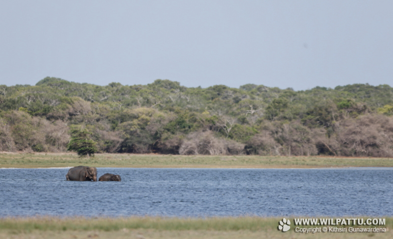 3.06pm the two Elephants moved to the edge of Periya Uppu Villu and walked across the water. While moving across the calf submerged under water on a few occasions perhaps to seek relief from the intense heat.
