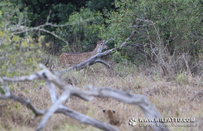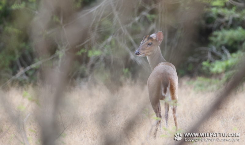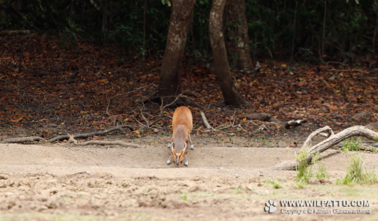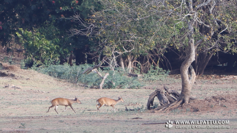 12.52pm a Barking Deer between Palu Kola Wala and the ‘Sohon Pitiya” pond.Wilpattu is one location where this species lives along with its cousin the Tufted Grey Langur Semnopithecus priam. I have seen them at Eluwankulama, Pomparippu, Maradanmaduwa, Palu Kola Wala and at Ibba Wala.