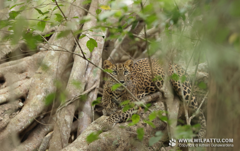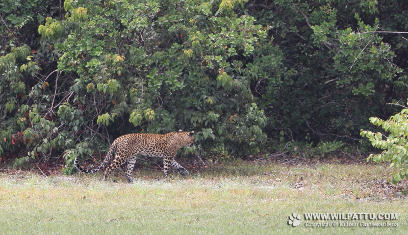 Later upon checking her spot pattern I was thrilled to note that this is a new leopard for me. I had listed it under Leopards of Wilpattu – Guest section as Divulgas Mandiya Leopard 2. Having studied the images I have received from Pathum Neeliya, Hemantha Wimalasena and Namal Kamalgod I was able to determine her age as two years and 10 months. As this is my first sighting of this female I named her Palu Kola Wala Female 3 for the purpose of my study with the code (PKWF 3).