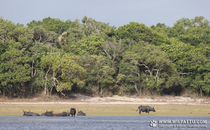 3.18pm 2 Buffalo at Kudapatessa.This interesting bird which resembles a Drongo in appearance is inafct a cuckoo. They are known to lay their eggs in the nests of Black-fronted Babblers and the immature birds, are covered with white spots, which disappear as the birds reach maturity. In adult birds white spots/bars will remain in the under tail and undertail-coverts. This species is found throughout the Park in Wilpattu. Its ascending six-note call is often heard during the breeding season from about late December until March. This is a bird that is often heard but seldome seen as it usually ocupies the canopy.