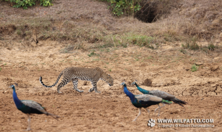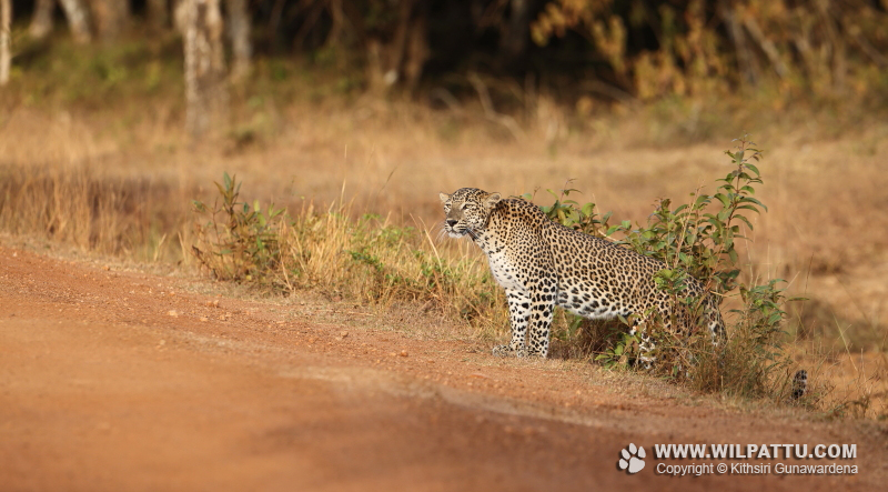 7.10am a Ruddy Mongoose between Wellamudalama junction and Periya Villu.8.15am we drove down to Periya Uppu Villu and observed a small herd of 5 Spotted Deer. While looking around for any animals we observed the deer were agitated and started looking into the forest. After a few minutes they started to run in our direction. However, despite them not making any alarm calls we decided to move on to the road to check out the area they were looking intently. We observed fresh pug marks on the road and stopped to see in what direction the cat had moved. Just then a leopard sprinted across the road and disappeared into the forest. The agitation of the deer was quite clear. Perhaps they did not make any alarm calls as they only detected the scent of the leopard.