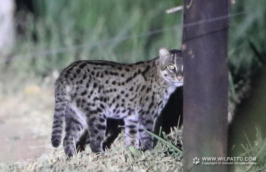 Having left Colombo after work around 5pm on the 13th and reached Wilpattu around 9.30pm. As I turned on to the Hunuwilagama tank bund I was thrilled to observe a Fishing Cat at the turn off to our house. These cats are sometimes seen in my garden but quite difficult to photograph due to their nocturnal behaviour.