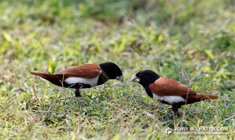 2.27pm a pair of Black-headed Munia feeding on grass seeds at Manik Wila. Even though not as common as the White-backed or the Spotted Munia this species can also be seen throughout the country. It is even found in the wetlands just outside the city of Colombo.
