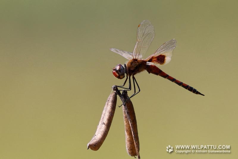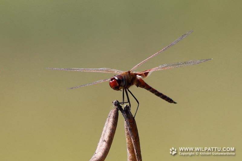2.43pm I photographed a dragonfly perched on a Rattlepod plant at Kumutu Villu. My initial thoughts were that it is a Sociable Glider that I had observed in the park. Later upon verifying with the literature I was thrilled to find out that it is a Burmeister’s Glider. A dragonfly I photographed for the first time in the park.