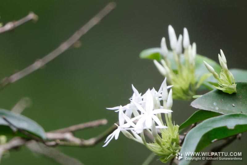 2.50pm I observed a vine with White Jasmin type flowers between Kumutu villu and Manik Wila. It was different to the Wild Jasmin Jasminum angustifolium that it commonly observed. Upon verifying with the field guides I was happy to note that it is a species which is referred to as Wild Jasmin Jasminum angustifolium var sessiliflorum. Which is a related but a different species from the Wild Jasmin I have already recorded in the park.