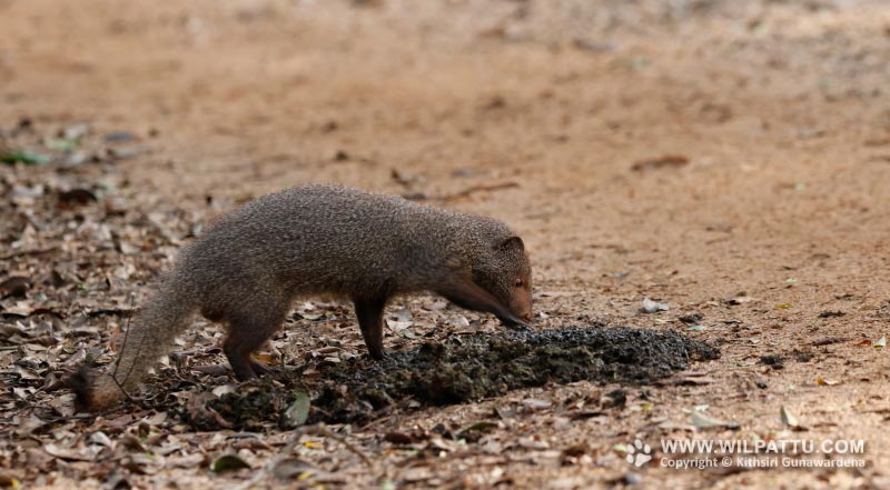 7.58am a Ruddy Mongoose was digging into a pile of cow dung at Manadanmaduwa. Dung attracts different species of dung beetles. I have observed on many occasions where species such as Land Monitors, Jungle Fowl, Indian peafowl and Mongoose probing piles of dung to prey on such beetles.