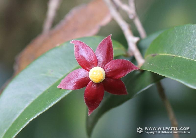 12.12pm Ceylon Uvaria Uvaria zeylanica in bloom at Kattarambu Villu. This woody climber is referred to in Sinhala as Palukan. The fruit is edible and is referred to in Sunil Shantha’s famous old Sinhala song “Bovitiya dan palukan ware me nova podi nango”.