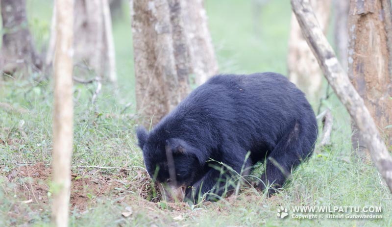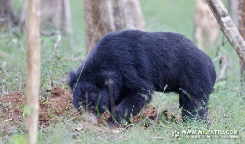 5.15pm a Sloth Bear at Maradanmaduwa. The bear had dug up a termite hill and was feeding on the insects. The heavy rains received by the park yesterday had softened the hard exterior of these usually very had termite hills. It is a usual practice for many termite hills to get raided by bears during the first rains after the dry season.