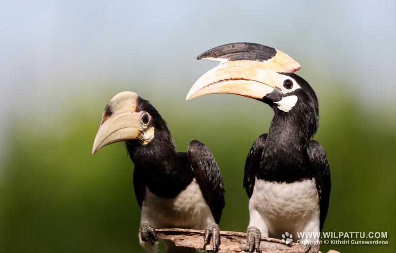 The nest hole was found on a Margosa tree growing adjacent to a patch of forest and a paddy field. The breeding behaviour of these birds are quite interesting. Once a nest hole is selected by the pair the female moves into the nest cavity. She then cements the opening with a mixture of mud and its own droppings leaving only a vertical slit where the male can pass food. Thereafter she sheds her flight, and tail feathers and lays her eggs. The bird remains inside this self-imposed prison incubating and relying on its mate to supply her food. These birds mainly feed on fruits but will feed on any small animals they can catch. I have seen them feeding on Lizards, snakes as well as chicks of smaller birds. Once the eggs are hatched the male brings a diet consisting of a higher percentage of animal prey which includes small animals such as lizards, frogs, mice and squirrels. Once her flight feathers have grown back the female will break the cemented opening and fly out of the nest to join the male in feeding their family. The remaining chicks will re cement the opening and will continue to remain in the nest feeding on the food that is delivered by both their parents. Once they grow their flight feathers the chicks move out and follow the parents begging to be fed during the first two months of their life.