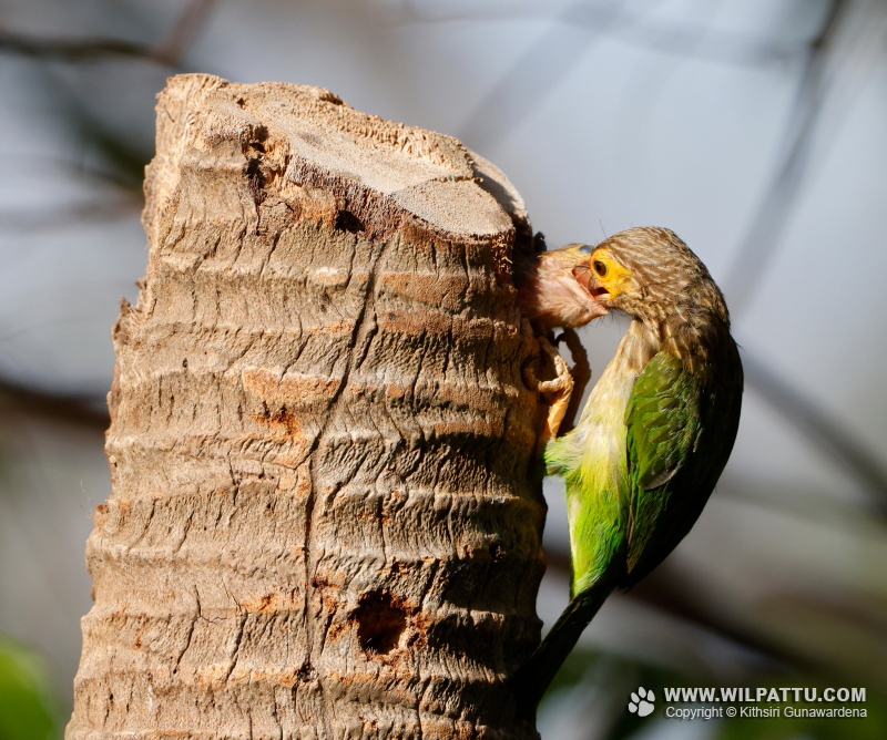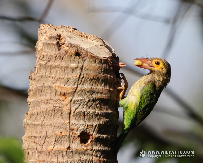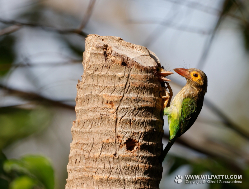 A pair of Brown-headed Barbets had nested in one of the three coconut logs that had been erected in the garden to attract Woodpeckers.