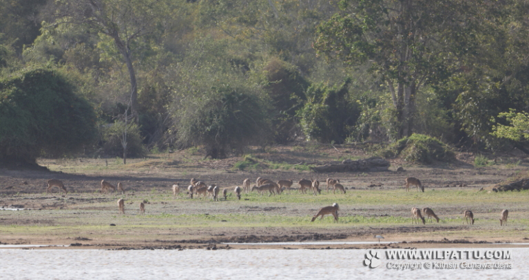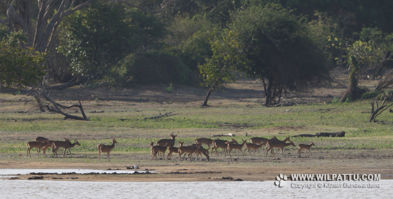 There were scattered herds of Spotted Deer totaling up to 72 animals feeding on the fresh grass growing on the areas exposed by the receding water.