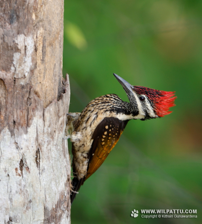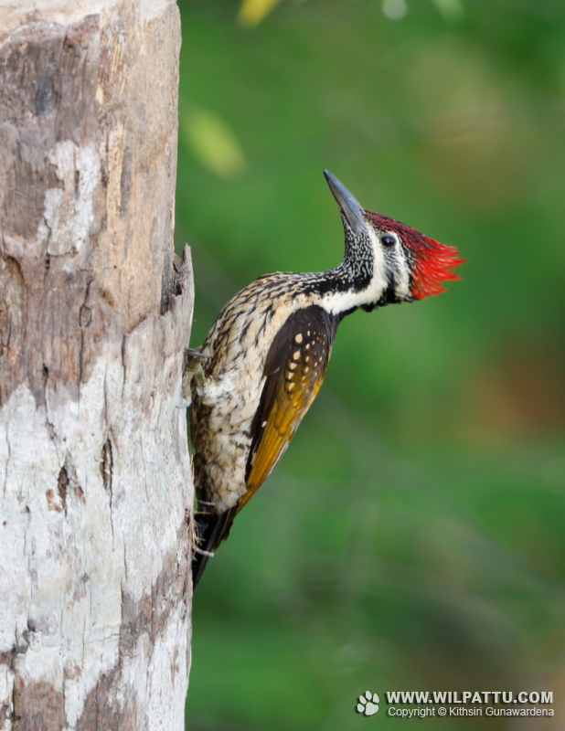 While photographing the elephants a male Golden-backed Woodpecker alighted on one of the coconut logs erected close to the bungalow. The bird inspected the log for some time and left. It is likely that they would nest in one of these logs soon.