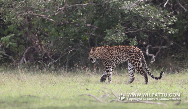 It was a young male leopard and was seated in one of the small “islands of bushes” found at this locality. After about 10 minutes he moved out cautiously and moved quickly in to another such “island”. There after he walked into the tall grass (Borupan) and moved out of sight. Having checked its spot pattern I was pleased to note that this is the Boralu Wala Male 1 (BRWMC 1), that used to be seen between Ibba Wala and Boralu Wala.